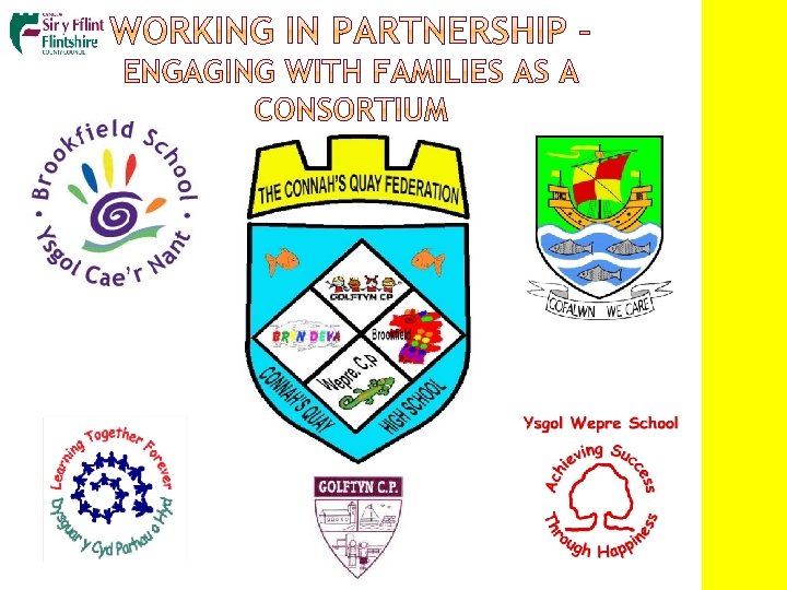 � Connah’s Quay High School � Ysgol Cae’r Nant � Number on roll: 937 FSM: 13. 3% � Number on roll: 377 FSM 19% � • • • � Consortium of schools Economic/social setting Family engagement trial Federation formed 2013 Successful bid to Communities First