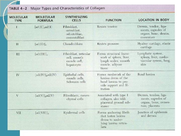 Collagen fibers �Staining (Eosin - pink; Mallory’s - blue; Masson’s – green) �Physical feature