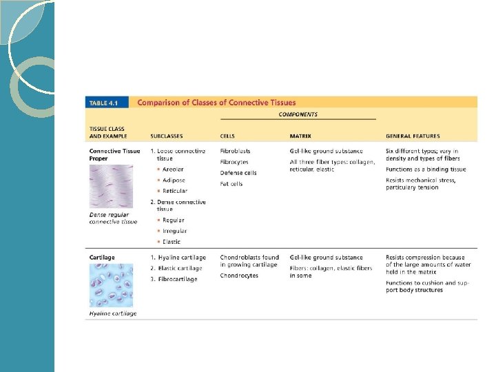 What's the main role of connective tissue? o o o o Mechanical support Material that connects and binds cells into tissues Binds tissues to each other Protection and Defense Serving as a medium for exchange Storage (water, ions, minerals, Growth factor) Energy supply