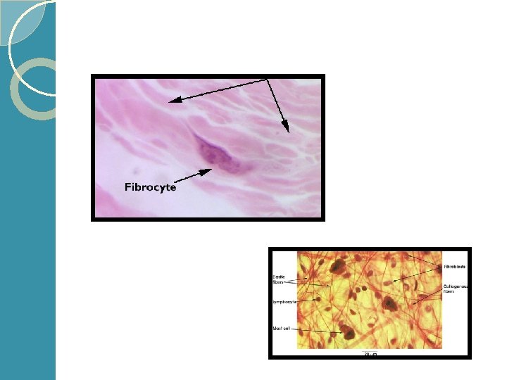 Fibroblast q are most common cells of C. T. q Produce and secrete ECM q Active fibroblast has more cytoplasm include of developed RER, Golgi apparatus and euchromatic nucleus = activated (wound healing) q Inactive fibroblast (Fibrocyte) has flattened nuclei, sparse cytoplasm q Fibroblasts may differentiate to adipose cells or chondrocytes