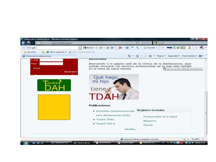 Correo de contacto general, para dudas y envíos de documentación, además del correo de los investigadores: • CORREO INVESTIGACION MESA ADOLESCENTES: investigaciontdah 2009@gmail. com • CORREO DEL ALGORITMO Y MESA ADOLESCENTES TDAH. tdah. adolescencia. 2009@gmail. com • COORDINADOR: palacioslino@hotmail. com