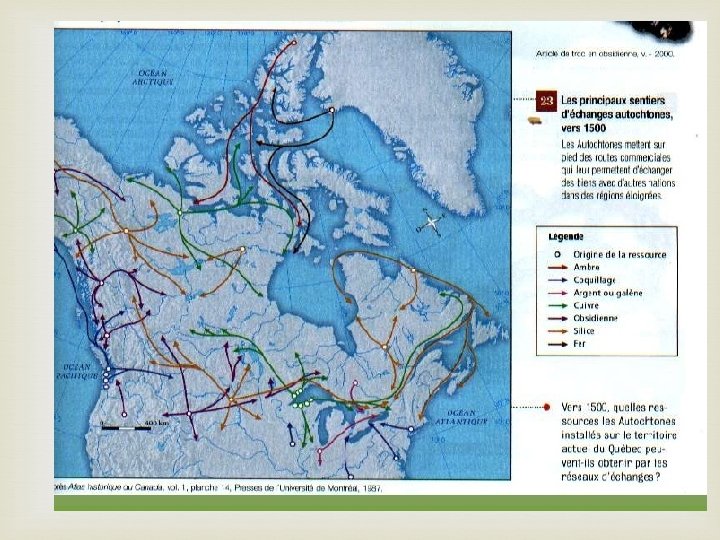 Les réseaux d’échanges autochtone Troc Ressources qu’ils n’ont pas sur leur territoire (Coquillages, maïs, blé, onyx, etc. ) Vaste réseau d’échange suit les voie d’eau. Sceller des alliances économiques et alliances guerrières