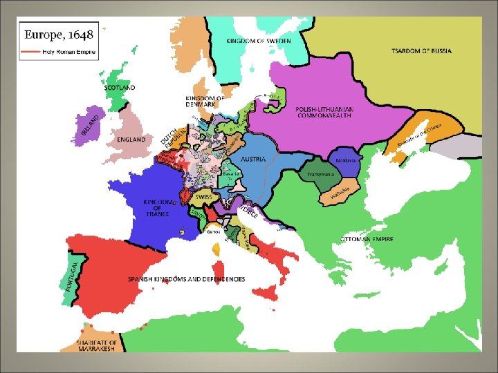 The Birth of the Global Economy – Three new commercial empires: Portugal, Spain, and the Dutch – 16 th century Portugal controlled the sea routes to India – Portuguese Brazil supplied most of Europe’s sugar – Spain had a land empire in the New World and a sea empire in the Pacific – Global commercial boom from 1570 -1630 – Dutch sea trade dominated in the later 17 th century