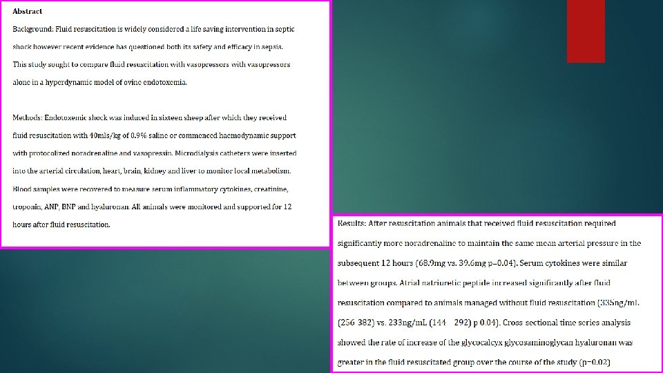 Consequências não intencionais: a ressuscitação com fluidos piora o choque em um modelo ovino de endotoxemia Unintended Consequences: Fluid Resuscitation Worsens Shock in an Ovine Model of Endotoxemia. Liam Byrne L, Obonyo NG, Diab SD, Dunster KR, Passmore MR, Boon AC, Hoe LS, Pedersen S, Fauzi MH, Pimenta LP, Van Haren F, Anstey CM, Cullen L, Tung JP, Shekar K, Maitland K, Fraser JF. Am J Respir Crit Care Med. 2018 Oct 15; 198(8): 1043 -1054. doi: 10. 1164/rccm. 2018010064 OC. PMID: 29882682 Free article. Artigo Livre! Apresentação: Helena Melo, Leomara Amorim, Pollyana Gouveia Coordenação: Alexandre Peixoto Serafim PRM em Medicina Intensiva Pediátrica do HMIB/SES/DF www. paulomargotto. com. br Brasília, 14 de novembro de 2020