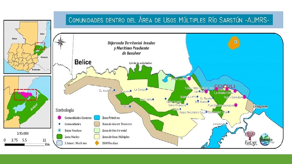 Antecedentes de Eco. Logic en la Zona ● ● ● Apoyo en la conformación y organización de Asociación Maya Pro. Bienestar Rural del Área Sarstún (APROSARSTUN) desde 2008 Estudio de Identificación de Alternativas Económicas (2016) Estudio de Zonificación Económica Ecológica (2016) Estrategia de Desarrollo Comunitario Para AUMRS (2018) Pescadores artesanales de Barra Cocolí desarrollan iniciativa de turismo comunitario como negocio alterno a la pesca (20172019) Apoyo en la conformación de la Asociación de Autogestión Turística de Barra Cocolí (AUTBAC) (2019)