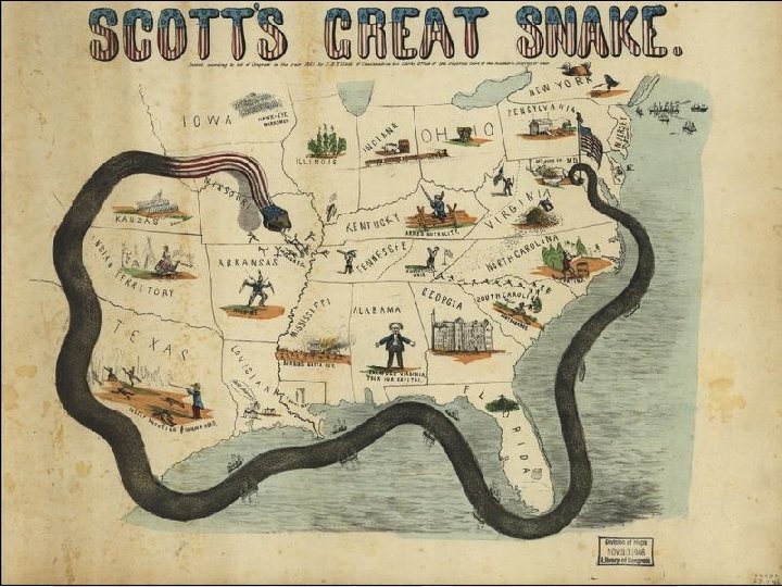 The Anaconda Plan 1. blockade (block with ships) Confederate coast 2. take Mississippi to cut Confederacy in two 3. capture CSA capital of Richmond