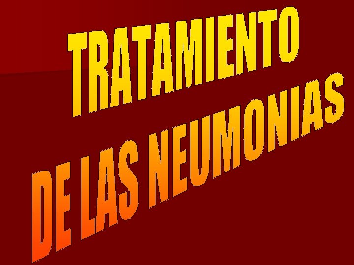 NEUMONÍA ADQUIRIDA EN LA COMUNIDAD Condición. Bacterias atípicas, zoonoticas. Patógenos habituales Chlamydia psittaci. , (psittacosis) Coxiella burnetii. (fiebre Q) Francisella tularensis, (tularemia) Terapia I. V. de elección Doxiciclina, 200 mgs. , I. V. c/12 hrs. , por 3 días; continuar con, 100 mgs. , I. V. c/12 hrs. , por 2 semanas. Terapia I. V. alterna Quinolonas I. V. , c/24 hrs. , por 2 semanas. Terapia oral o relevo Doxiciclina, 200 mgs. , oral, c/12 hrs. , por 3 días; continuando con 100 mgs. , oral, c/12 hrs, por 11 días. O bién: Quinolonas orales c/24 hrs. , por 2 semanas.