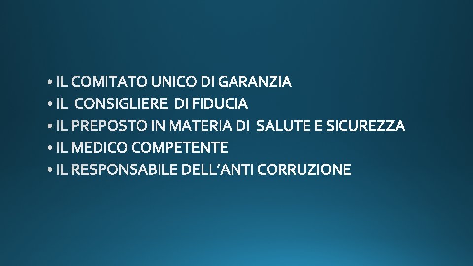 Art. 2087 c. c. tutela delle condizioni di lavoro: “L'imprenditore è tenuto ad adottare nell'esercizio dell'impresa le misure che, secondo la particolarità del lavoro, l'esperienza e la tecnica, sono necessarie a tutelare l'integrità fisica e la personalità morale dei prestatori di lavoro".