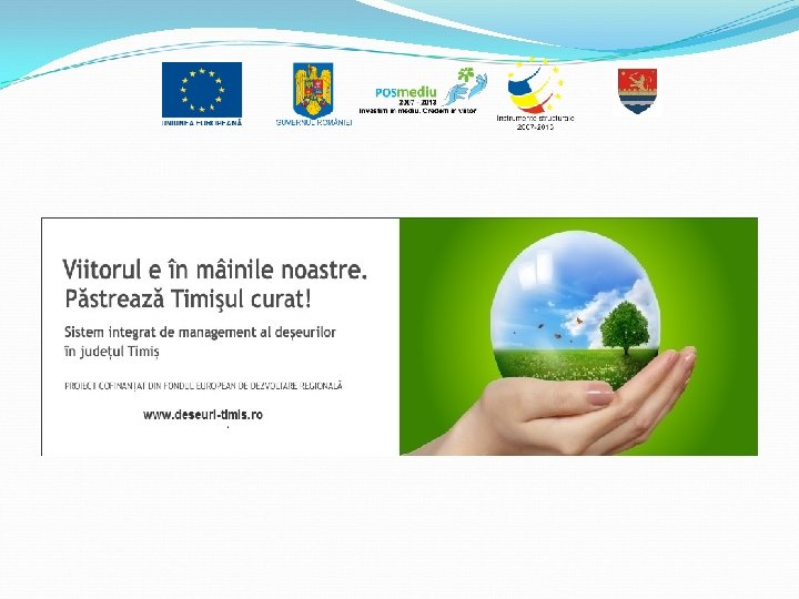 SISTEMUL INTEGRAT DE MANAGEMENT AL DESEURILOR Programul Operaţional Sectorial Mediu (POS Mediu) Investiţii în achiziţionarea de containere pentru colectarea selectivă, facilităţi de transport, sortare, compostare şi reciclare, construirea de depozite de deşeuri la standarde europene, statii de transfer, închiderea depozitelor vechi, neconforme etc.