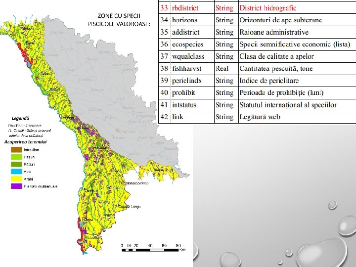 SARCINA 3. „METODOLOGIA DE REALIZARE A BAZEI DE DATE” (S-A REALIZAT): • IDENTIFICAREA ARIILOR PROTEJATE DE DIFERITE TIPURI CONFORME CU DCA DE-A LUNGUL R URILOR NISTRU ȘI PRUT, ÎN LIMITELE LĂȚIMII DE 1000 M; • IDENTIFICAREA ARIILOR PROTEJATE ÎN CONFORMITATE CU DCA ASOCIATE CU BAZINELE HIDROGRAFICE ALE R ULUI B C (DBH NISTRU) ȘI R UL COG LNIC (DBH PRUT, DUNĂRE ȘI MAREA NEAGRĂ); • INSERAREA DATELOR COLECTATE REFERITOR LA ARIILE PROTEJATE IDENTIFICATE ÎN BAZA DE DATE; • COORDONAREA STRUCTURII TABELELOR DE ATRIBUTE, TIPURILOR DE DATE, NUMĂRULUI DE SIMBOLURI ȘI ALTE DETALII CU CONSULTANTUL LOCAL PRIVIND SERVICII INFORMAȚIONALE ÎN CADRUL COMPONENTEI 3.