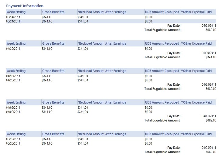 Consolidated Inquiry Click the Unemployment Compensation tab to view information about unemployment compensation benefits. 1. Enter the Individual # (if it is not already pre filled) or social security number. 2. Click Search. 3. The Search Results display at the bottom of the page. The Unemployment Summary will display the client’s Unemployment Income Record. Information though the interface may lag up to one week.