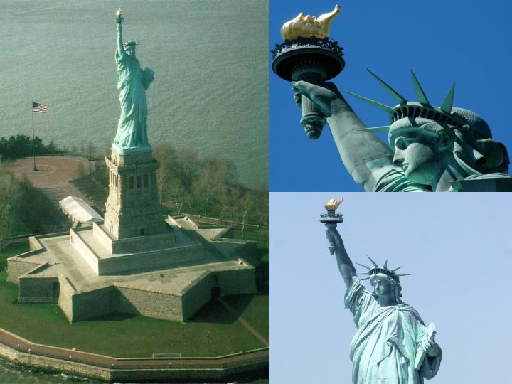 Statuia Libertăţii l l l Statuia Libertăţii este situată în New York pe Insula Libertăţii (Liberty Island). A fost oferită Americii de către Franţa la împlinirea a 100 de ani de la câştigarea independenţei. Are 92, 99 m şi reprezintă o femeie acoperită de un drapel care ţine în mâna dreaptă o flacără, iar în mâna stângă o placă pe care este inscripţionată ziua independenţei Americii: 4 iulie 1776. Simbolizează libertatea şi a devenit rapid emblema Statelor Unite ale Americii.