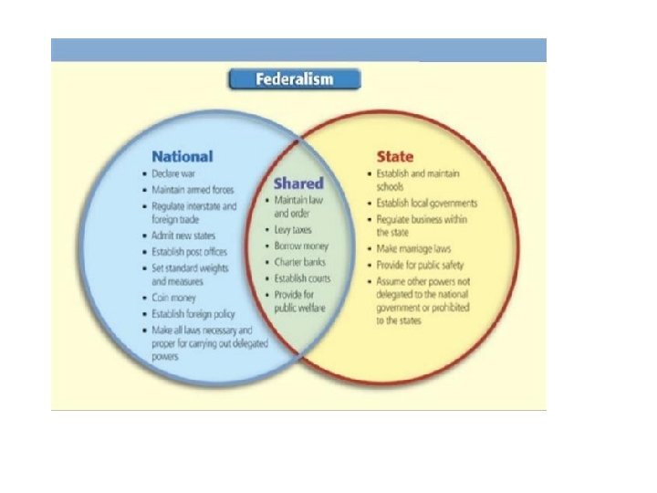 STRUCTURE OF AMERICAN FEDERALISM VI. Obligations of state govts. A. Full faith and credit clause: each state must honor the public acts, records and legal proceedings of other states, e. g. , birth certificates, marriages, debts. 1. Four states (MA, VT, IA, CT) have legalized same-sex marriages. 2. However, in the 1990 s Congress passed the Defense of Marriage Act, which allowed each state to define marriage, and in effect not recognize gay marriage if the state defined marriage as the union of a man and a woman. B. Privileges and immunities clause: each state must grant to citizens of other states the same rights and privileges that they grant to their own citizens, i. e. , states cannot unreasonably discriminate against citizens of other states. C. Extradition: Governors must return suspects to the states in which they allegedly committed their crimes. D. Interstate compacts require consent of Congress.