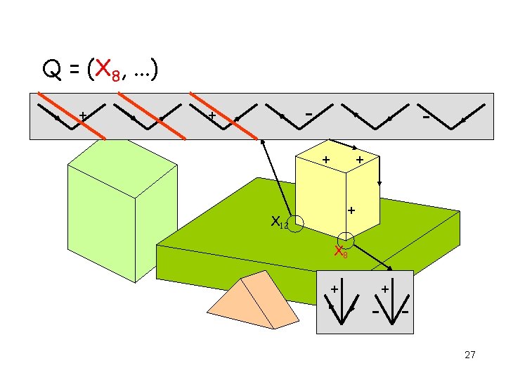 Edge Labeling An “edge extractor” has accurately extracted all the visible edges in the image. The problem is to label each edge as convex (+), concave (-), or occluding ( ) such that the complete labeling is physically possible 10