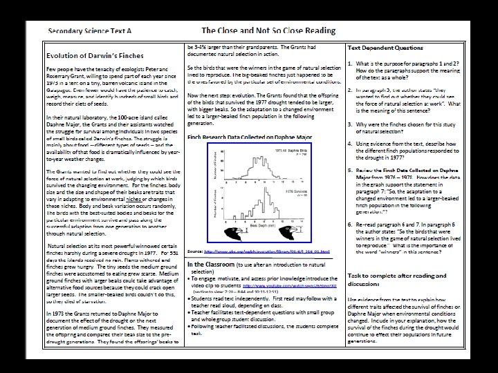 Why Text-Dependent Questions in the science classroom? • Analyzing , synthesizing, and applying information from a variety of texts is an expectation of NGSS and MCC-R Standards. • Text-dependent questions guide students in accessing information and provide a scaffold towards independent reading and deep understanding of core ideas.
