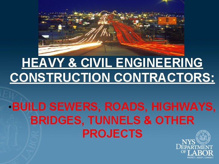 HEAVY & CIVIL ENGINEERING CONSTRUCTION CONTRACTORS: • BUILD SEWERS, ROADS, HIGHWAYS, BRIDGES, TUNNELS & OTHER PROJECTS