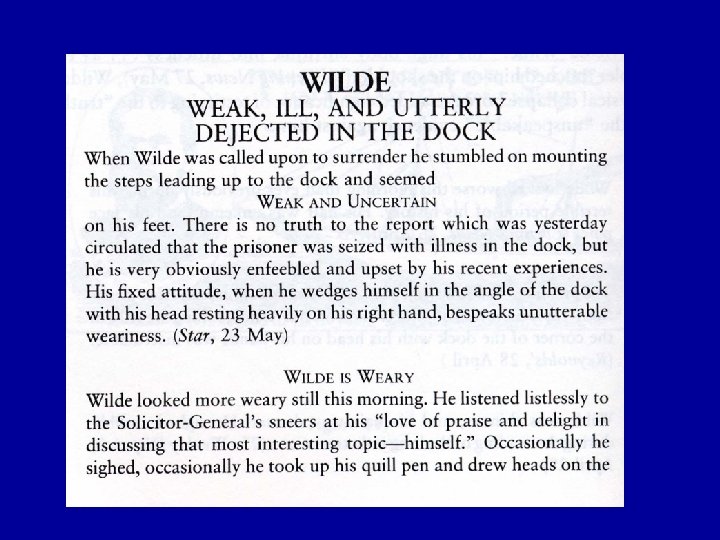 The Effect of the Wilde Trial A. Oscar Wilde trial establishes the public image of the homosexual personality or “invert” 1. flamboyant, aesthetical, otherwise different from the “bourgeois philistine”