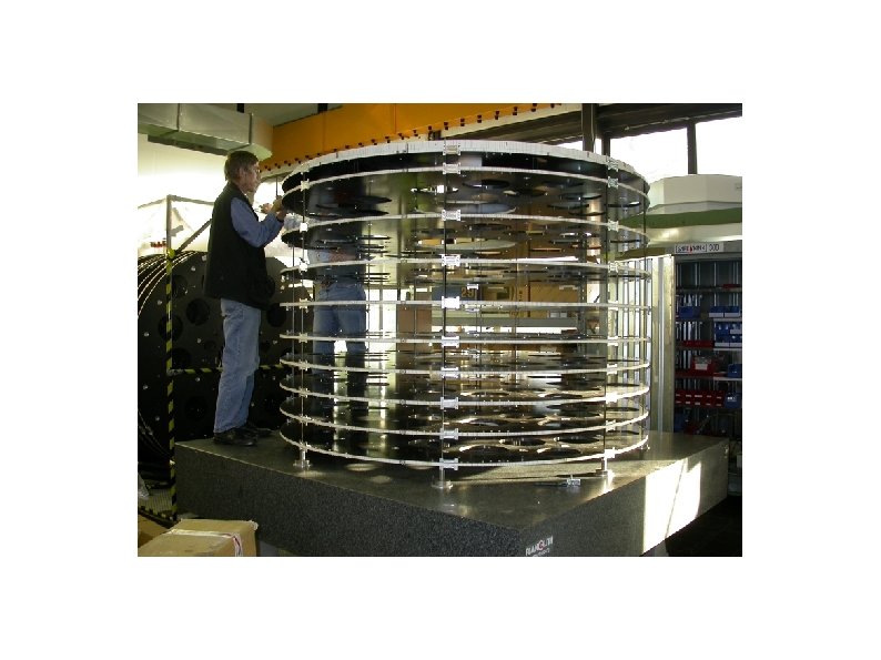 TEC INTEGRATION : PREPARATION OF STRUCTURE (1) Link : TEC_assembly. doc (Aachen I) TEC assembly needs a granite table with a hole in the center (measured planarity of Aachen table 7μ). Building the stack : - Each disk equipped with assembly and petal fixation inserts. - 12 spacer feet mounted on granite table, Disk 1 placed on these feet. - Rods threaded into the feet and distance holders guaranteeing the z-distance between Disks 1 and 2 placed on these rods. - - Disk 2 mounted, procedure repeated till the stack is complete. - Alignment Disk (disk 10) similar to normal disk with spacer profiles glued to ensure rigidity with disk 9 is placed on the TEC stack and the profiles are glued onto Disk 9.