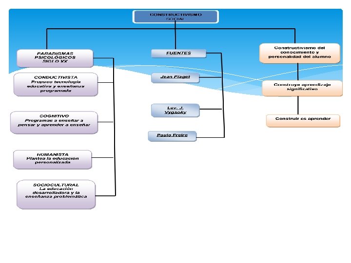 Constructivismo Social Siglo XX : Grandes logros en el campo educativo y pedagógico, aquí algunos de sus paradigmas Paradigma conductista: Tecnología educativa y enseñanza programada. Paradigma Humanista: Educación personalizada Paradigma Cognitivo: Plantea los proyectos y programas de enseñanza orientados a pensar y aprender Paradigma sociocultural: resalta la educación desarrolladora y la enseñanza problemática