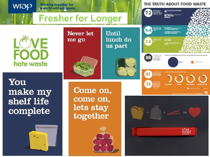 Opportunities to help reduce food waste (1) As consumers we can all make more use of the information provided on packaging, particularly as much of this is being updated, and the packaging itself, to ensure that the way we store food at home keeps it fresher for longer n Local authorities, consumer groups and others can provide advice on buying food with the appropriate packaging (e. g. loose or packaged if you want to keep it fresher for longer), buying the right pack size and looking more closely at labels n Love Food Hate Waste is doing more to raise awareness of the benefits of reducing food waste, and the role that packaging can play in that. Further information about how to get involved can be found at our partners’ website n