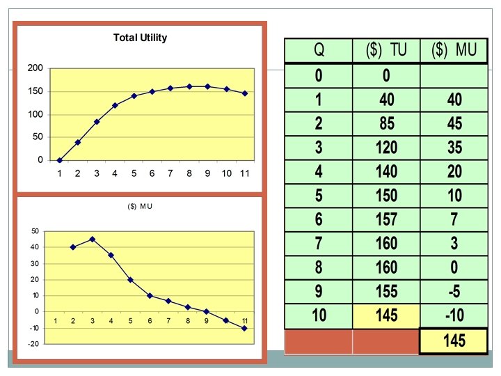 Marginal utility # of slices of pizza total utility marginal utility 0 0 - 1 70 70 2 110 40 3 130 20 4 140 10 5 145 5 6 140 5 -