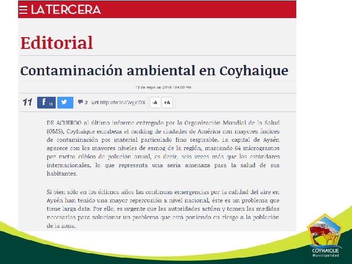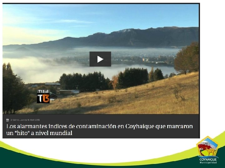 CONTAMINACIÓN DEL AIRE CIUDAD DE COYHAIQUE Julio 2016 “Corazón de la Patagonia Chilena”