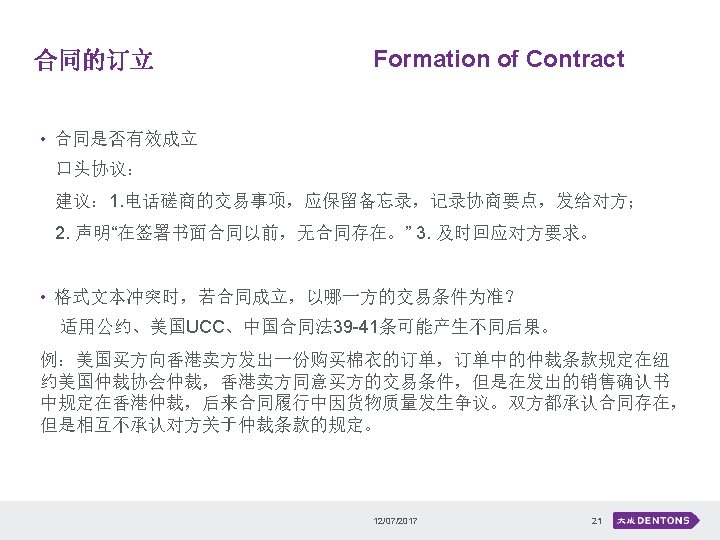 合同的订立 Formation of Contract 2017年 12月7日 12/07/2015 18