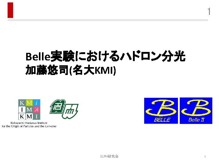 Molecular state? (isospin breaking) 0 D c u c π u D*0 D+ c 13 c D* d π d I=0 Eigen state is ・The mass difference of D 0 D*0 and D+D*- is around 8 Me. V (Mu<Md) ・This mass difference is large compared with binding energy. (~0. 1 Me. V) →The contribution of D 0 D*0 becomes large and Isospin 0 and 1 Phys. Lett. B 590 (2004) 209 -215 are mixed. ++ if it is a molecular state. The JPC of the X(3872) should be 1 ELPH研究会