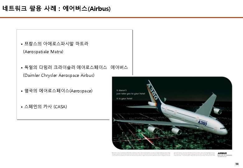 파트너 활용 사례 : 전략적 제휴 • Toshiba-Motorola (반도체) • Whirlpool-Philips (가전) • LG-Philips (LCD) 2006 EMBA 제휴 성공 요인 양립 가능성 (Compatibility) • Siemens-Corning (광섬유) • Asahi-Corning (TV 글라스) • Kodak-Matsushita (배터리) 능력 (Capability) 몰입도 (Commitment) • GE-Bosch(모터) • Fanuc-GE (공장자동화) 38