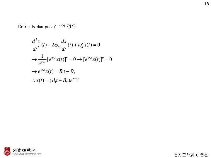 17 Solution Under-damped Over-damped Critically damped 전자공학과 이행선
