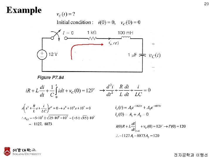 25 Solution of Differential Eq. To solve a differential equation, initial conditions must be specified. 전자공학과 이행선