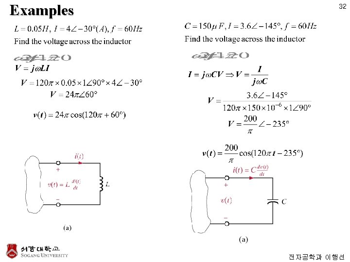 31 Phasor - capacitor Relationship between sinusoids 전자공학과 이행선