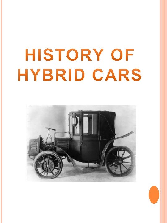 1898: FIRST HYBRID CAR 1916: Two prominent electric-vehicle makers — Baker of Cleveland Woods of Chicago — offered hybrid cars. 1920 -1965: Dormant period for mass-produced electric and hybrid cars. 1970 s : With the Arab oil embargo of 1973, the price of gasoline soared, creating new interest in electric vehicles. 1997: The Toyota Prius was introduced to the Japanese market 1999: Honda released the two-door Insight, the first hybrid car to hit the mass market in the United States. 2004: The Toyota Prius II won 2004 Car of the Year Awards