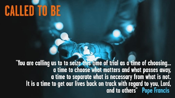 “You are calling on us to use this time of trial as a time of choosing. A time to choose what matters and what passes away, a time to separate what is necessary from what is not. It is a time to get our lives back on track with regard to you, Lord, and to others. .