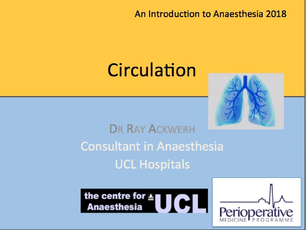 Summary • Anaesthesia is generally safe, especially for elective surgery • Focus on assessing risk • Remember equations for BP & CO • Remember Frank-Starlings law • Aim to minimise all the periods of CVS instability