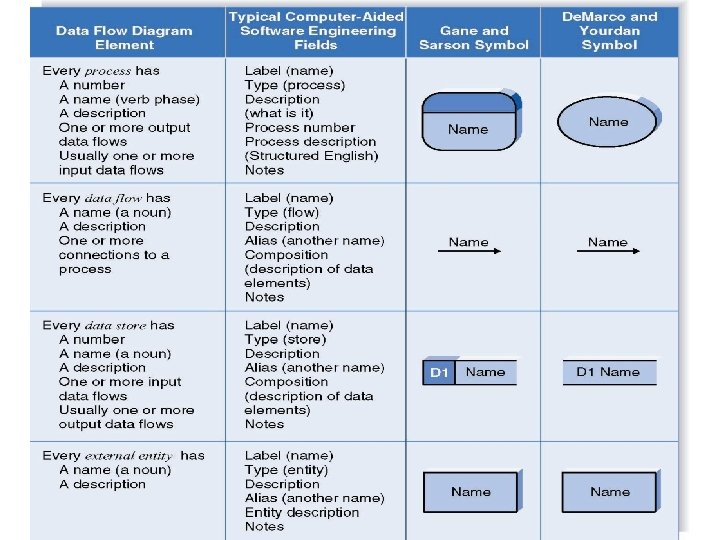 Data and Data Flow Analysis • Context and Data Flow Diagrams: – Main tools used to pictorially represent how application data and information flow through the system – Four symbols used: • • Process Interface Data Store Data Flow