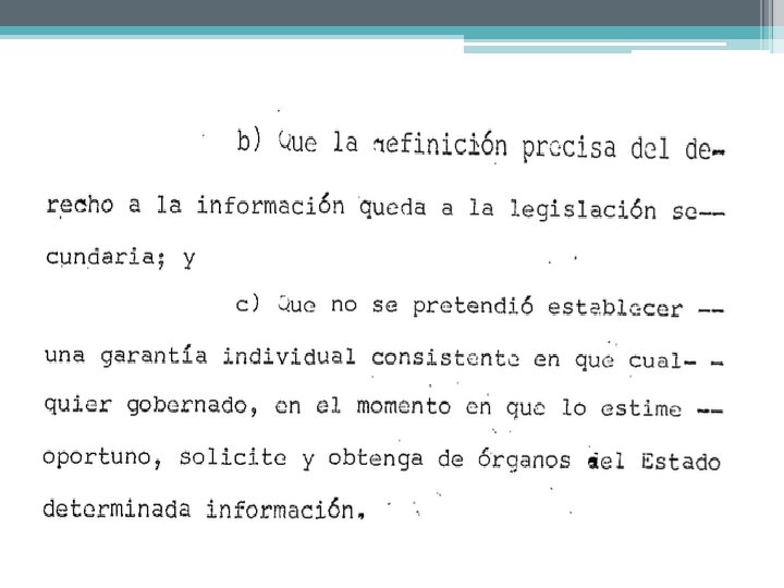 • Se adicionan básicamente 5 ppios/bases: • 1. Toda información es pública de origen. • 2. No es un derecho ilimitado. Establece los Reforma 20 de julio 2007 acotamientos (derecho a la intimidad, etc. ) • 3. Procedimientos sencillos y breves. • 4. Prueba de daño para resolver conflictos. • 5. Castigar conductas que atenten contra el Derecho a la Información.