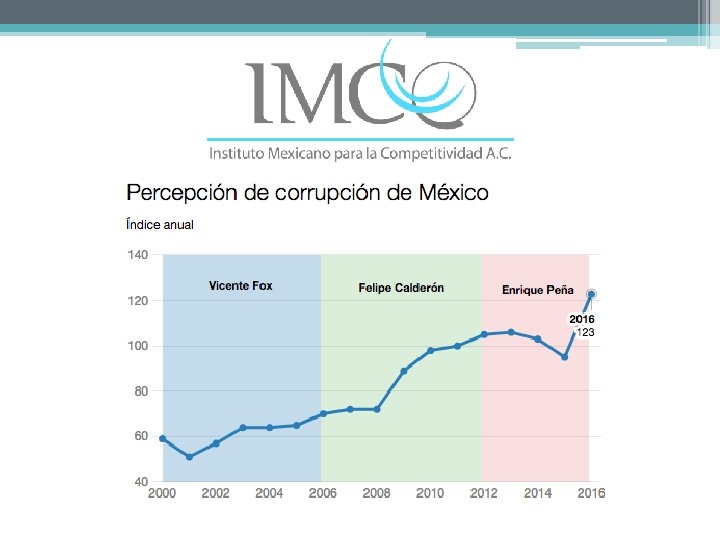 Índice de Percepción de Corrupción MÉXICO: Ocupa el lugar 123/176 países evaluados. Calificación: 30/100