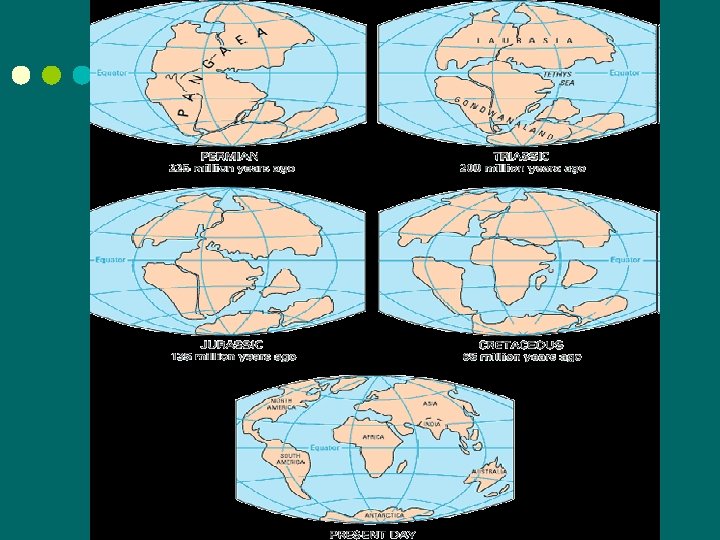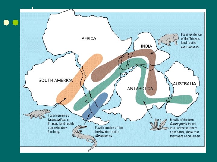 Evidence ¢ Plant and animal fossils found on several different continents were quite similar. ¢ Physically impossible for these organisms to have traveled across the ocean ¢ Compelling evidence that the two continents were once joined.
