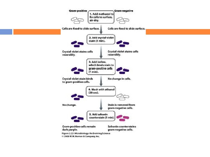 DIFFERENTIAL STAINS – GRAM STAINING cont. . Fresh reagents - of proper strength Control cultures - for a known GP bacterium and GN culture (S. aureus & E. coli)