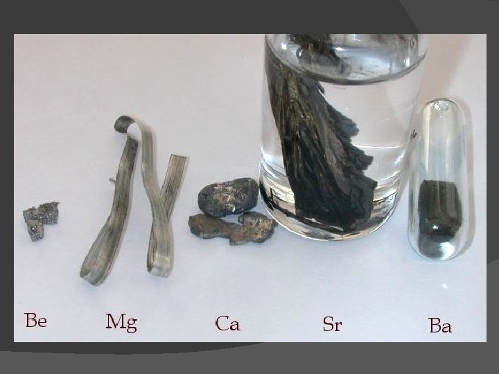 Alkaline Earth Metals � Group 2 � Less reactive than alkali metals, BUT will burn in the air if heated � Produce bright flames (used in fireworks) � React with water (not as vigorously as alkali metals) � Calcium reacts more quickly than magnesium