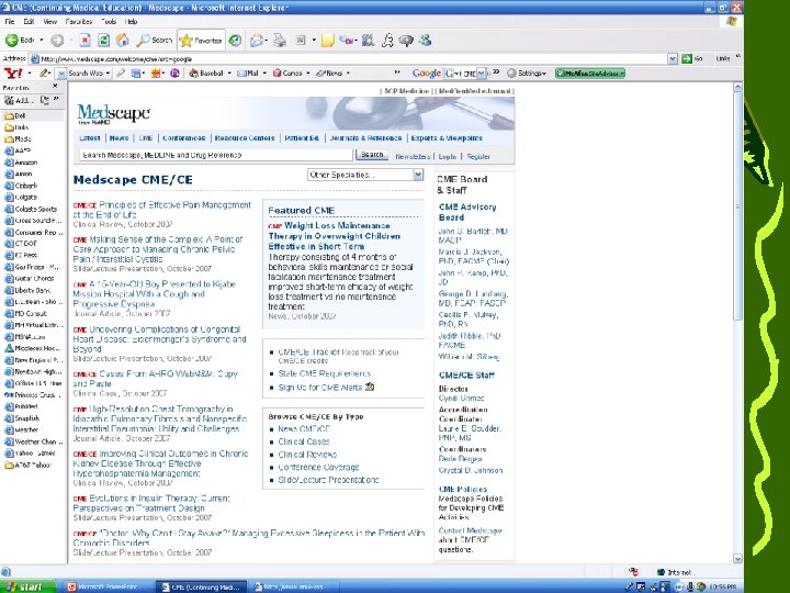 Other Internet resources • Medscape (from Web. MD) – Offers free CME to physicians – Log on, read an article, answer some questions and you get credit • CMELectures – Offers CME for a fee – Log on, read an article, answer some questions, enter your credit card number and you get credit