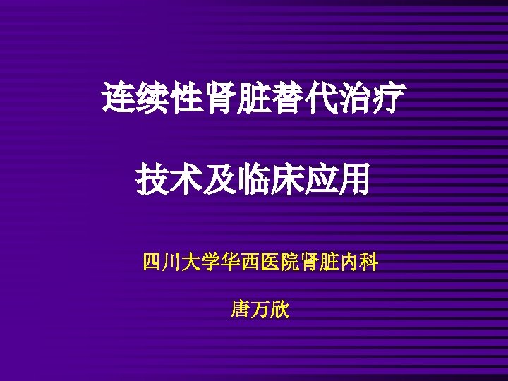 连续性肾脏替代治疗 Continuous Renal Replacement Therapy (CRRT) 连续性血液净化 Continuous Blood Purification (CBP)