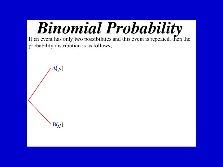 r = # of successes n = # of trials p = probability of success (on any given trial) q = probability of failure q=1–p