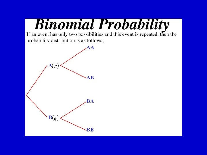 Binomial Events Have only 2 possible outcomes Called “success” and “failure”