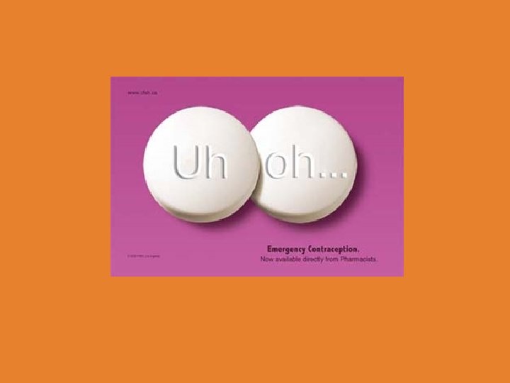 POPs (Progestin-Only Pills) 92 -99. 7% effective Micronor • Most difficult/unforgiving to use – if pill is more than three hours late, must use “back up” birth control for at least 7 days • Take one pill every day (28 day pack – no placebo) • No period because no placebo • Spotting is a common side-effect • Safe for breastfeeding women (should not effect milk supply) • Safe for women who cannot take estrogen