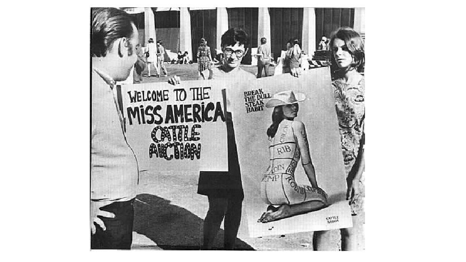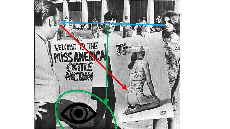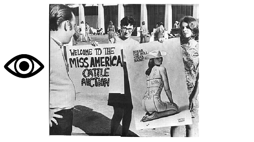 3)What is the issue at stake? While those two women were demonstrating against the Miss America beauty contest, lampooning the stereotype of the woman as a sexual object of consumption, a man stood by, seemingly more interested in catching an eyeful of the playboy centerfold held up by one of the protesters than in trying to understand or to support the feminist cause. The shadow of the photographer in the foreground is a reminder that for all the hype about ‘the gender gap’, discriminations die-hard: 50 years on, women are indeed still struggling against sexual abuse, the ‘glass-ceiling’ and the consequences of a parental leave on their personal careers.
