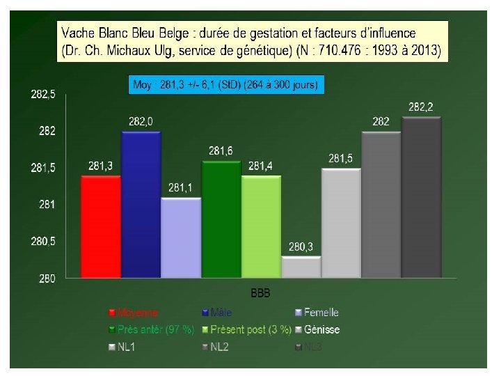 Durée de la gestation (6805 vaches) (Fitzgerald et al. Theriogenology. 2015; 84(3): 358).