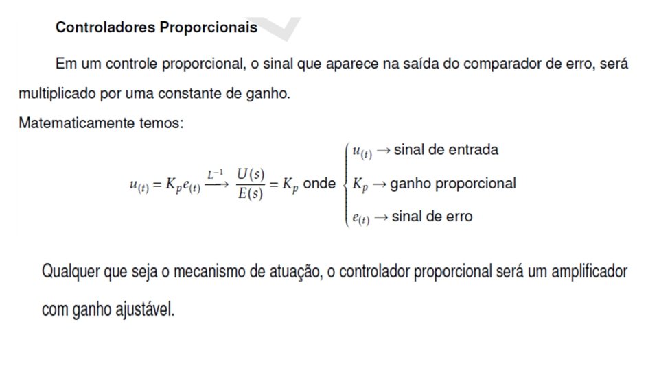 Como o nome sugere, em um controlador integral, a saída do mesmo, também conhecida como sinal de controle (ou ação de controle), é diretamente proporcional à integral do sinal de erro, ou seja, à integral do erro atuante. Sistema de controle no domínio do tempo