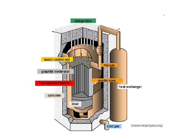 Carbon Dioxide Advantages • Corrosion by coolant is negligible. • Coolant doesn't react with fuel or with other core materials. • Coolant will not flash into vapor if primary system is ruptured. • Coolant has very low capture cross section. • Any fuel can be used, including natural uranium. • Coolant is cheap. • Ordinary leakage can be tolerated. • Gas turbine may be employed